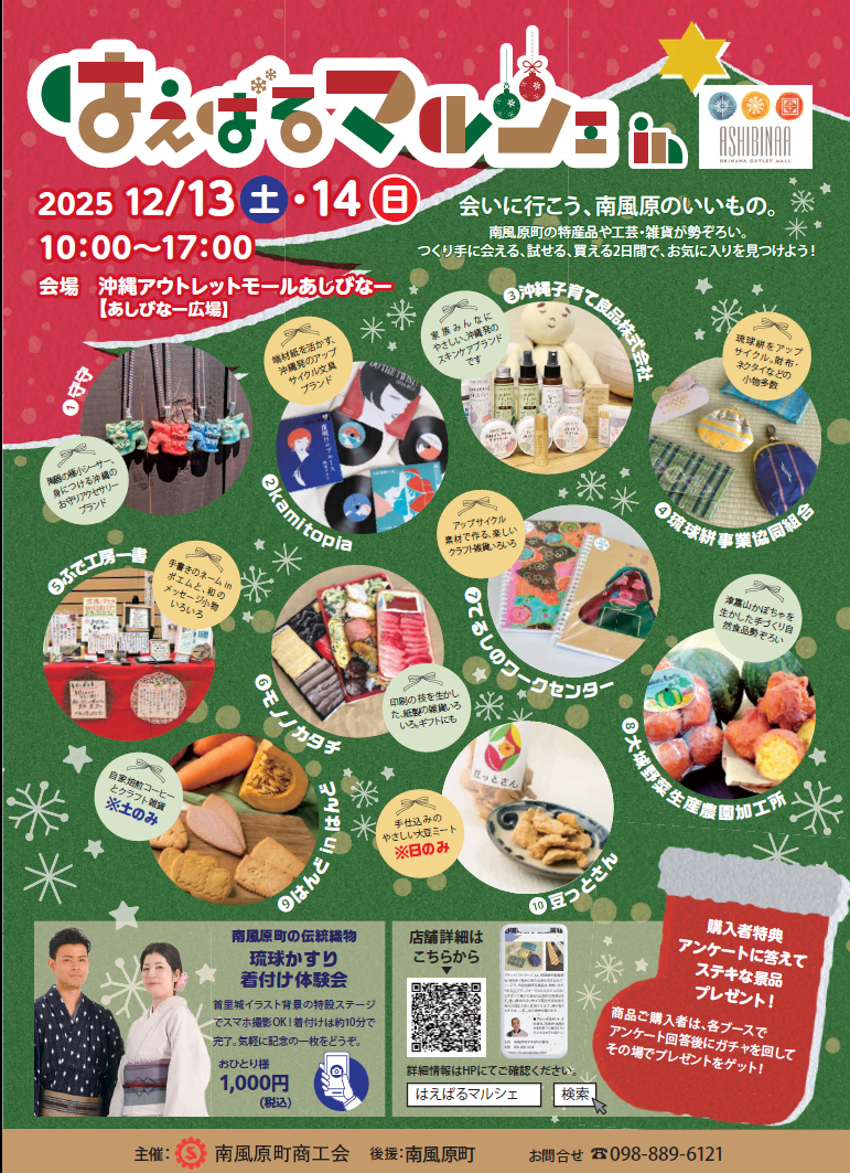 沖縄アウトレットモールあしびなーにて開催される『はえばるマルシェ in あしびなー』に参加します。新作の雑貨たちを販売しますので、ぜひ遊びに来てください!