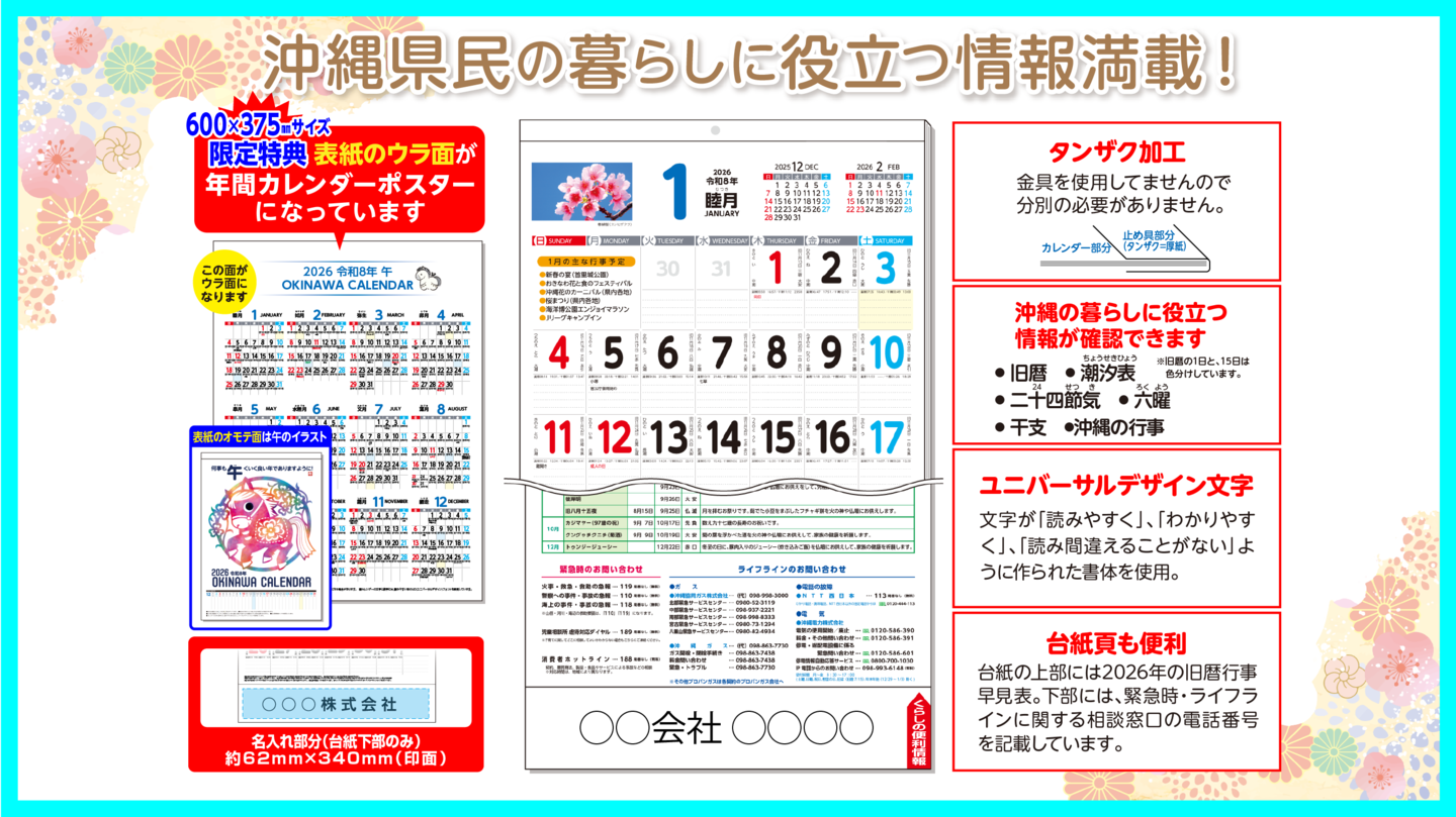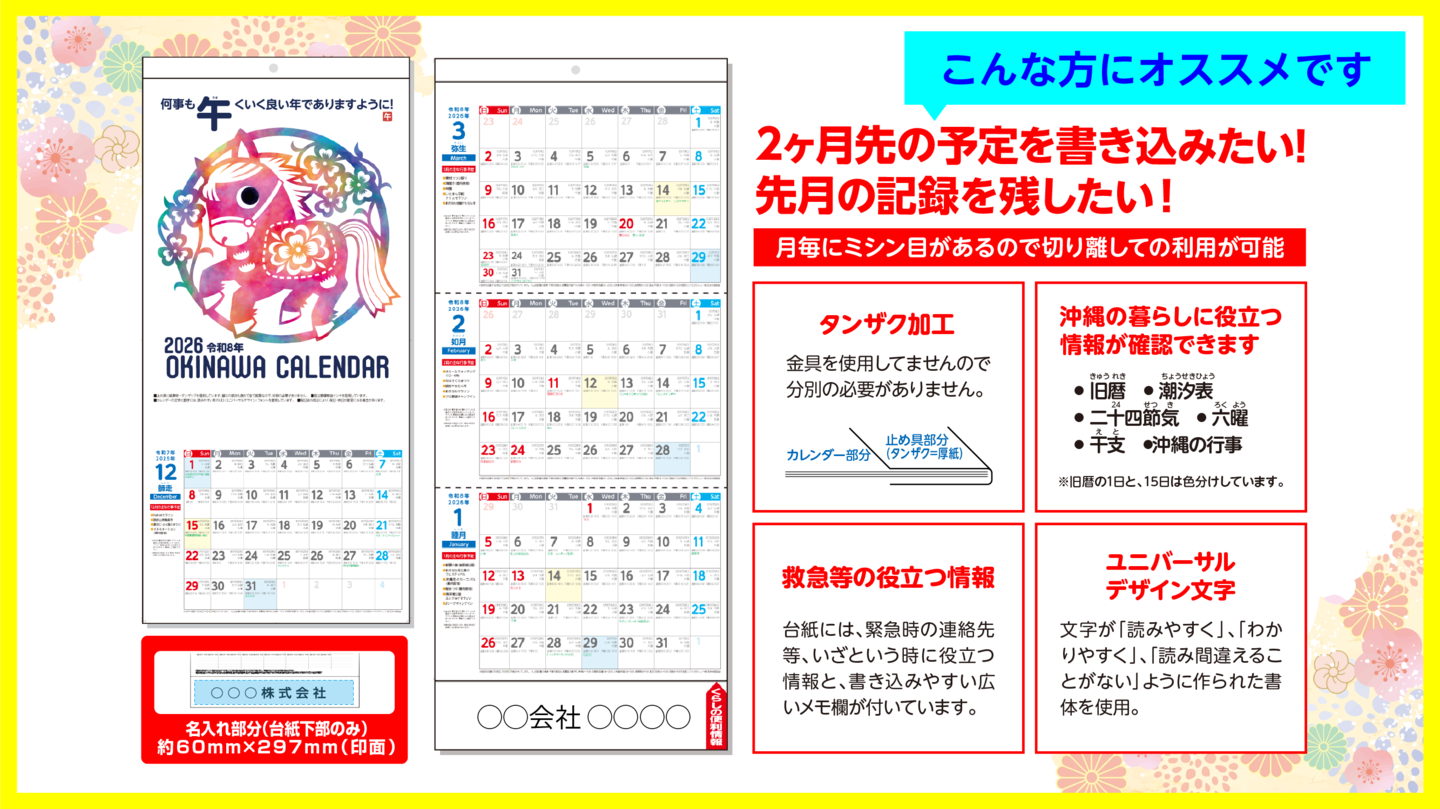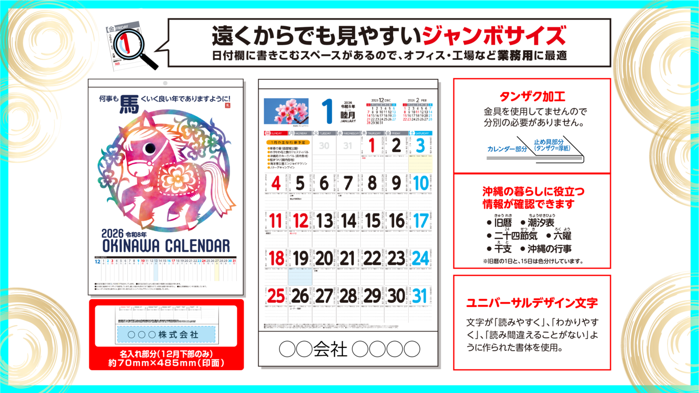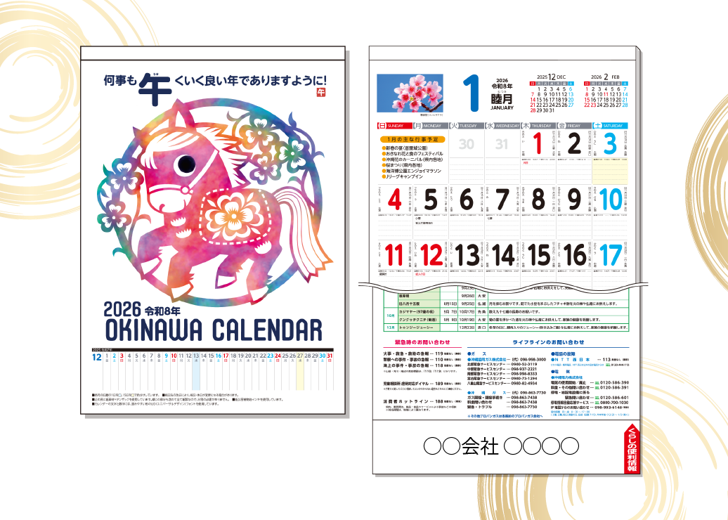 2026年(令和8年)沖縄卓上カレンダー